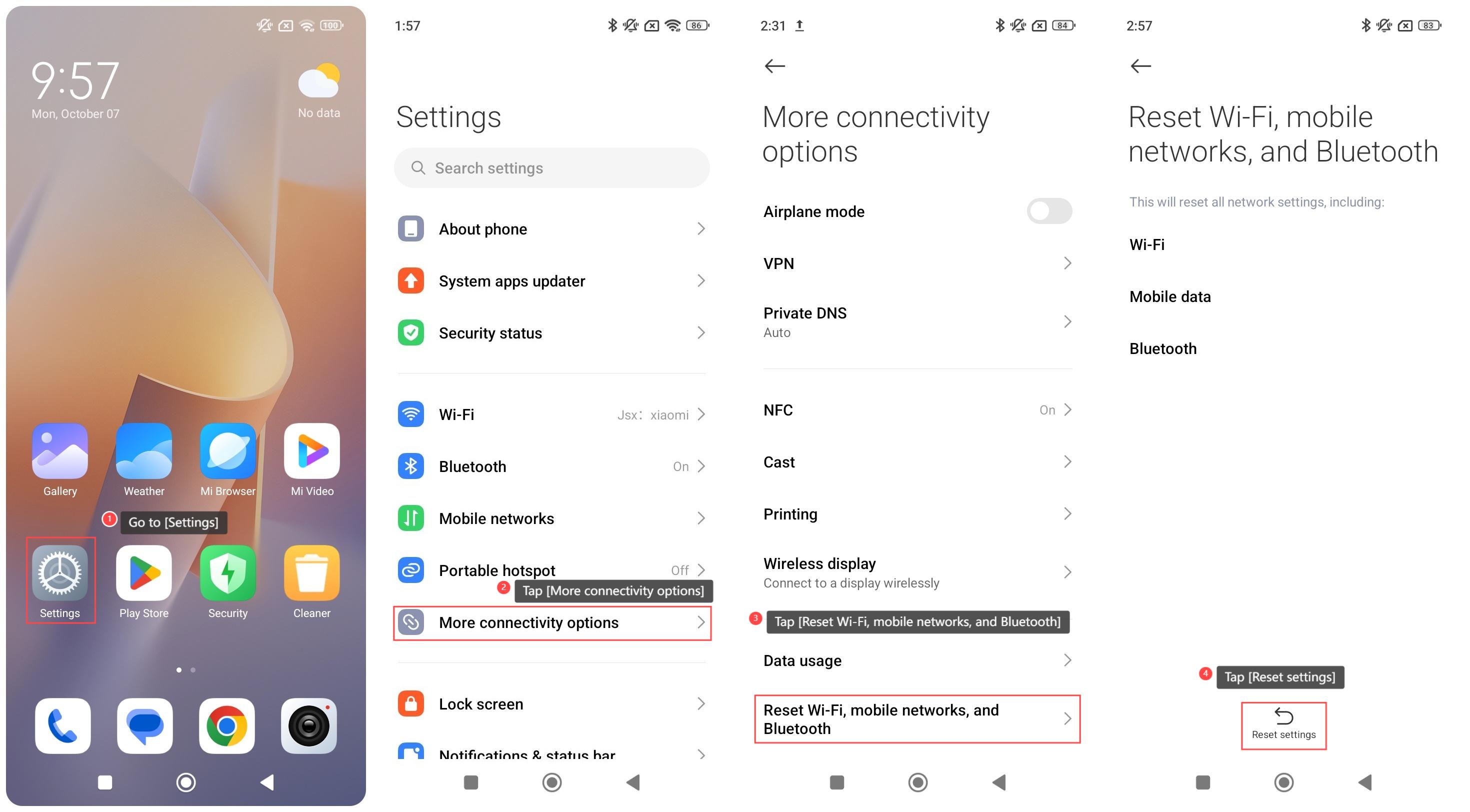 ในการรีเซ็ต Wi-Fi, เครือข่ายมือถือ และ Bluetooth โปรดดูขั้นตอนต่อไปนี้: