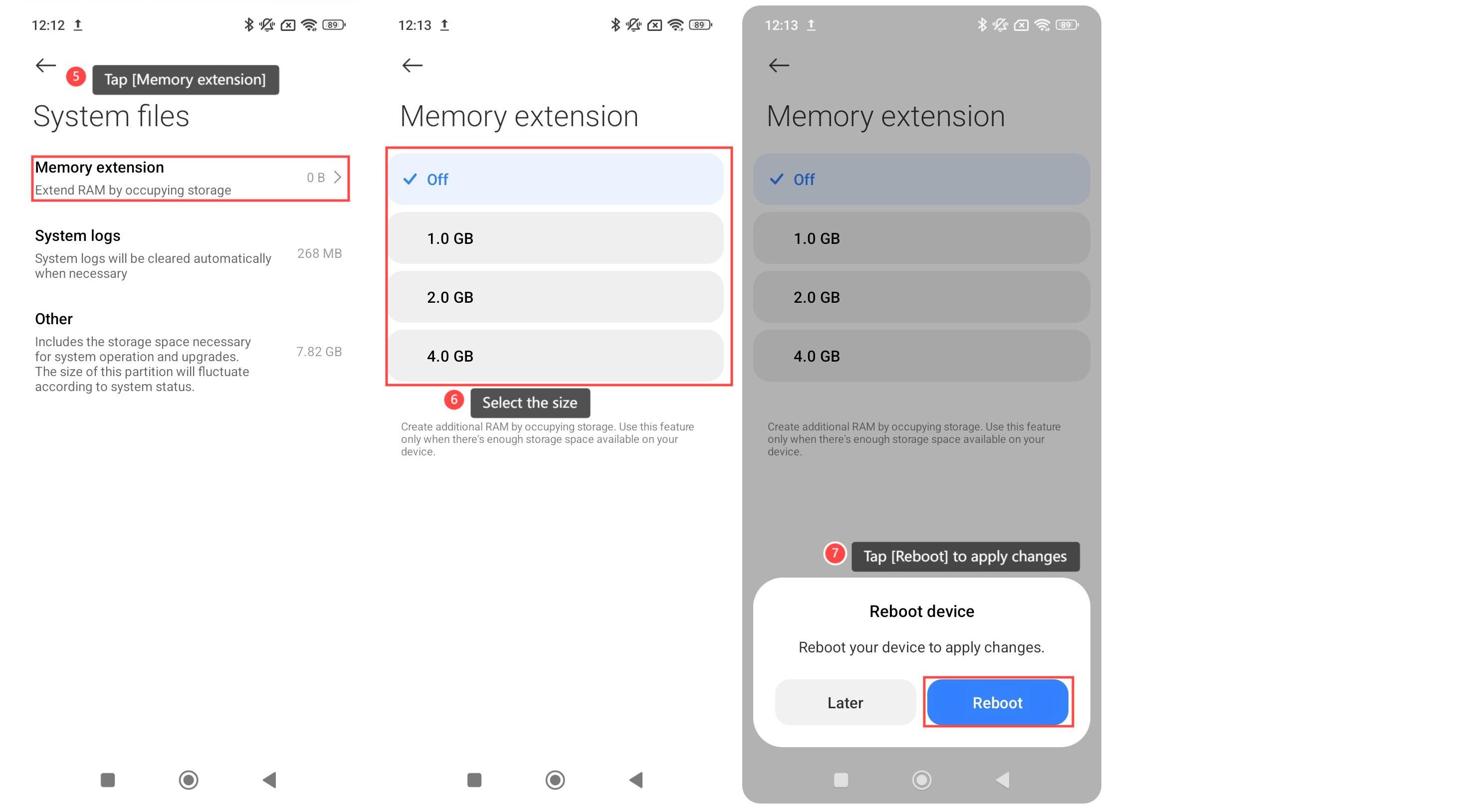 3. แตะ [ส่วนขยายหน่วยความจํา];