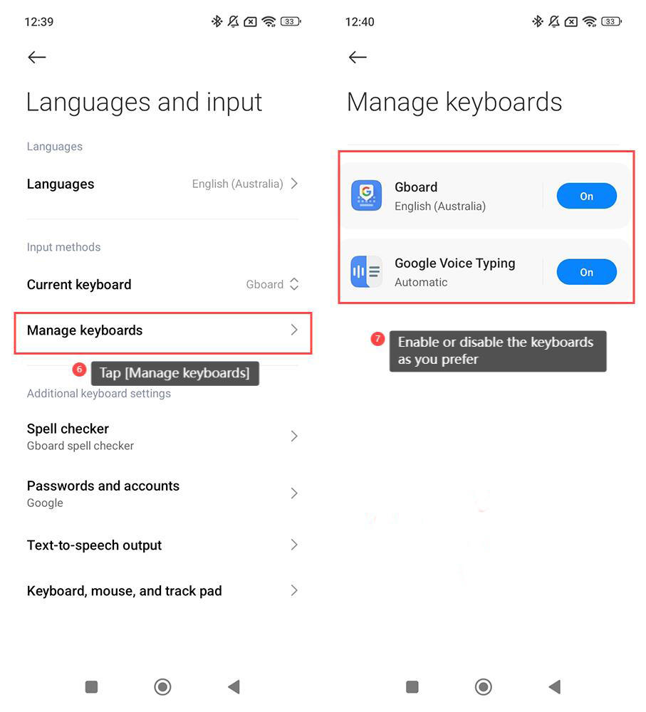 6. นอกจากนี้ คุณสามารถแตะ [จัดการแป้นพิมพ์];