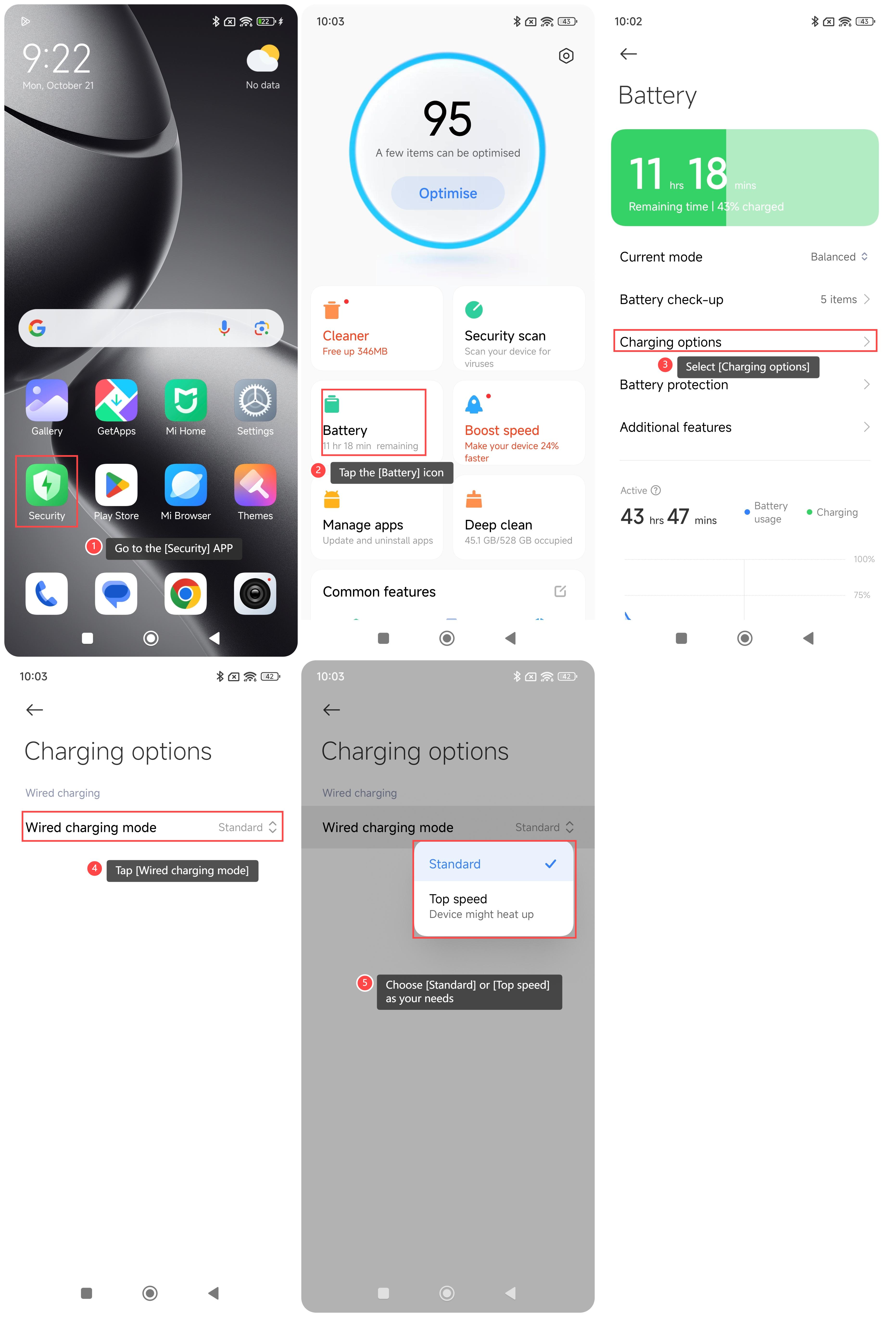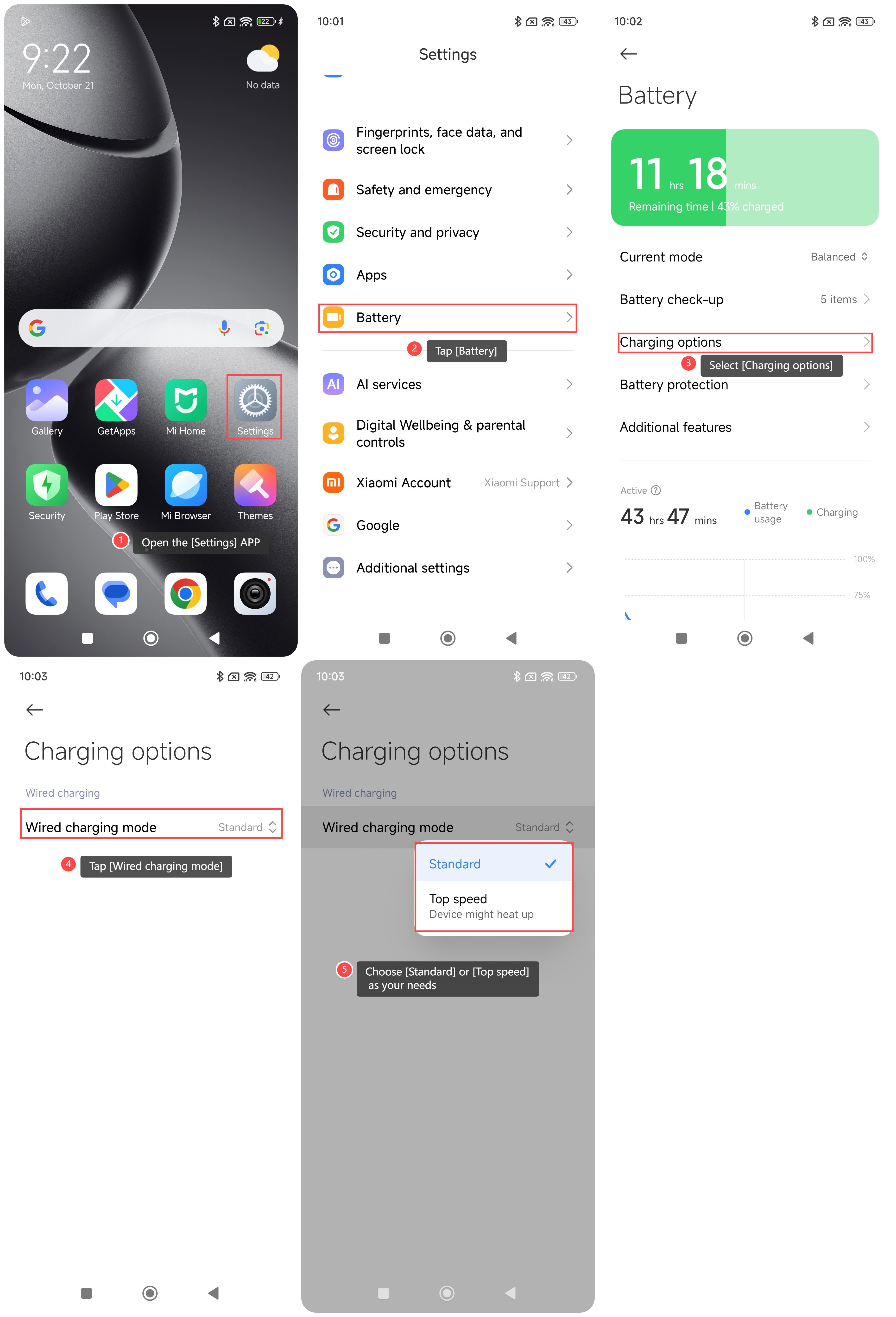 1. มาตรฐาน: ในโหมดมาตรฐาน กําลังการชาร์จค่อนข้างอ่อนโยน ซึ่งสามารถปกป้องสุขภาพของแบตเตอรี่ได้ดีขึ้น และหลีกเลี่ยงความร้อนสูงเกินไปหรือการเสื่อมสภาพของแบตเตอรี่อย่างรวดเร็ว เหมาะสําหรับการชาร์จรายวัน