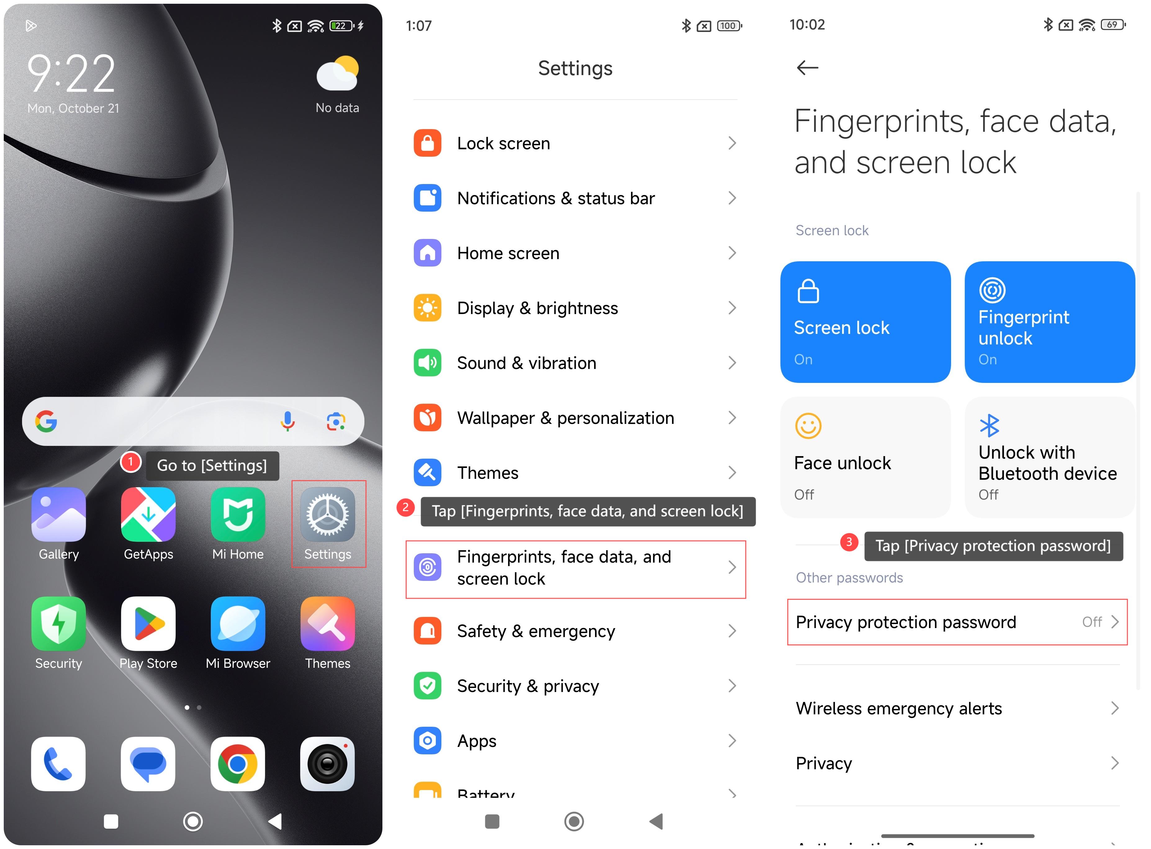 3. แตะ [รหัสผ่านป้องกันความเป็นส่วนตัว] และทําตามคําแนะนําเพื่อตั้งรหัสผ่าน