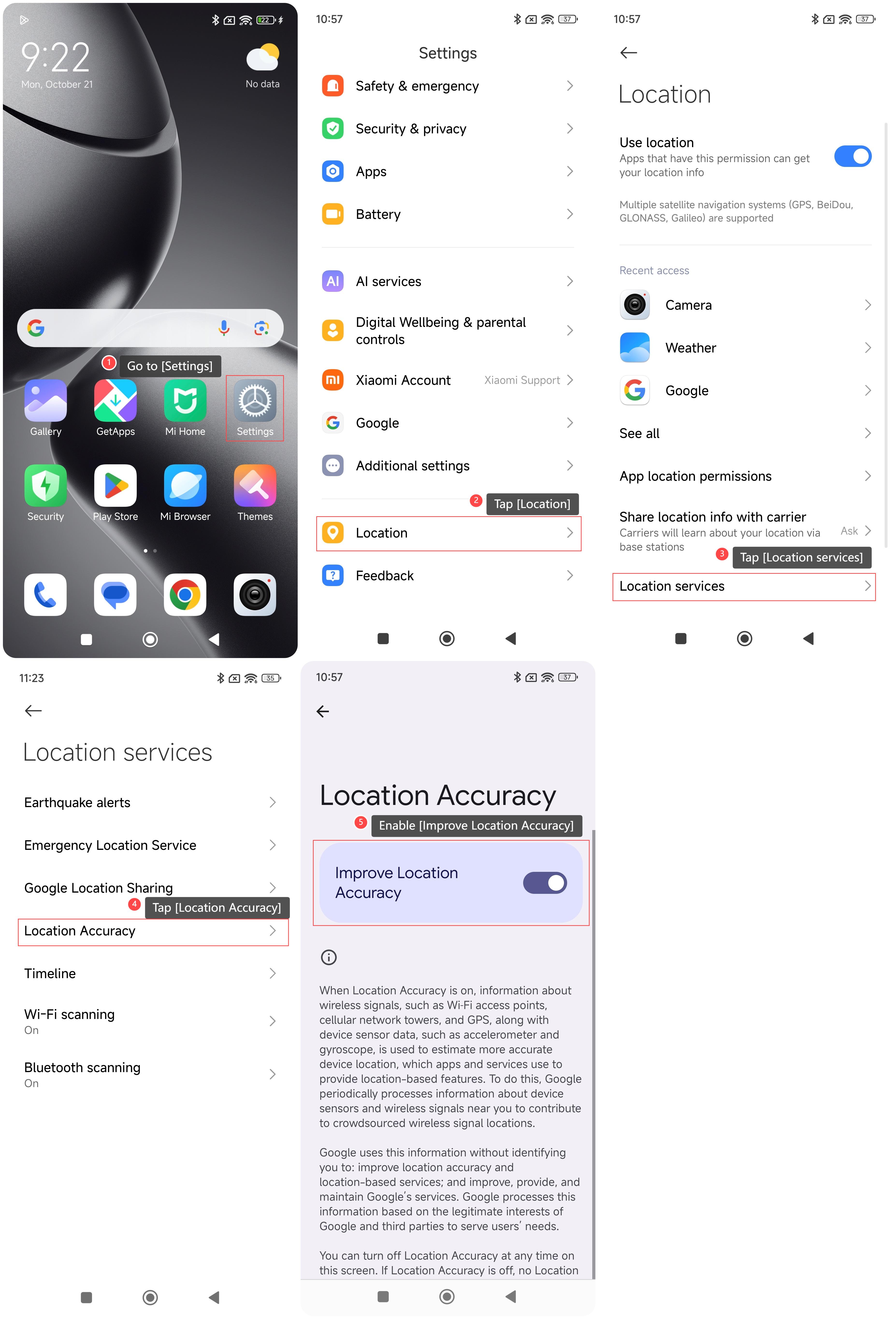 การเปิดใช้งานตัวเลือกในการปรับปรุงความแม่นยําของตําแหน่งบน Xiaomi 14T Pro ช่วยให้การนําทางแม่นยํายิ่งขึ้น นอกจากนี้ยังปรับปรุงคุณสมบัติด้านความปลอดภัยโดยให้ข้อมูลที่ถูกต้องในกรณีฉุกเฉิน และสามารถเพิ่มประสิทธิภาพการใช้แบตเตอรี่โดยปรับสมดุลบริการระบุตําแหน่งอย่างมีประสิทธิภาพ