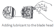 ขอแนะนําให้คุณเติมสารหล่อลื่นลงในหัวใบมีดก่อนใช้งาน