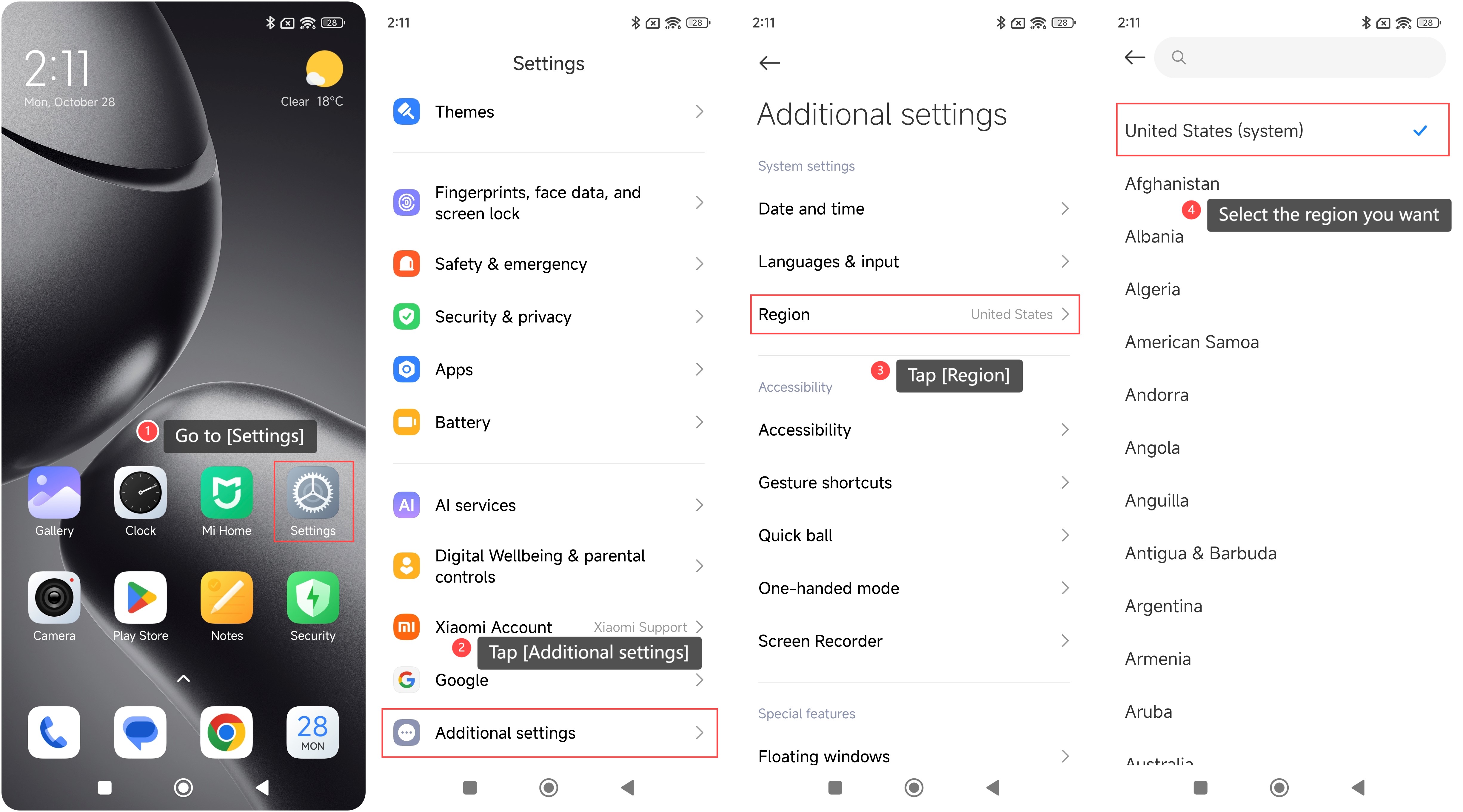 ในการตั้งค่าภูมิภาคบน Xiaomi 14T Pro โปรดดูขั้นตอนต่อไปนี้: