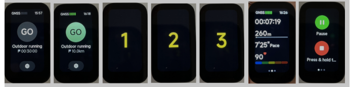 การวิ่งกลางแจ้ง: ระยะเวลา, ระยะทาง, อัตราการเต้นของหัวใจและช่วงอัตราการเต้นของหัวใจ, ฝีเท้า, แคลอรี่, จังหวะ, ก้าวเฉลี่ย, จํานวนก้าว;