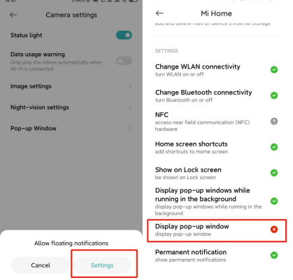 14.Q: กล้องกลางแจ้ง Xiaomi AW300 หน้าต่างลอยวิธี การตั้งค่า?ตอบ: ภาพแบบเรียลไทม์ของกล้องสามารถลดขนาดเป็นหน้าต่างลอยได้ และคุณต้องเปิด การอนุญาตหน้าต่างลอย Mi Home บนโทรศัพท์มือถือแล้วคลิกเพื่อให้มีผล เฉพาะโทรศัพท์ Android เท่านั้นที่รองรับฟังก์ชันหน้าต่างลอย