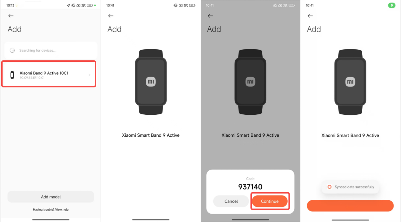 5. เลือกXiaomi Smart Band 9 Active มันจะค้นหาอุปกรณ์ที่ใกล้ที่สุดโดยอัตโนมัติและขอเชื่อมต่อกับวงดนตรี