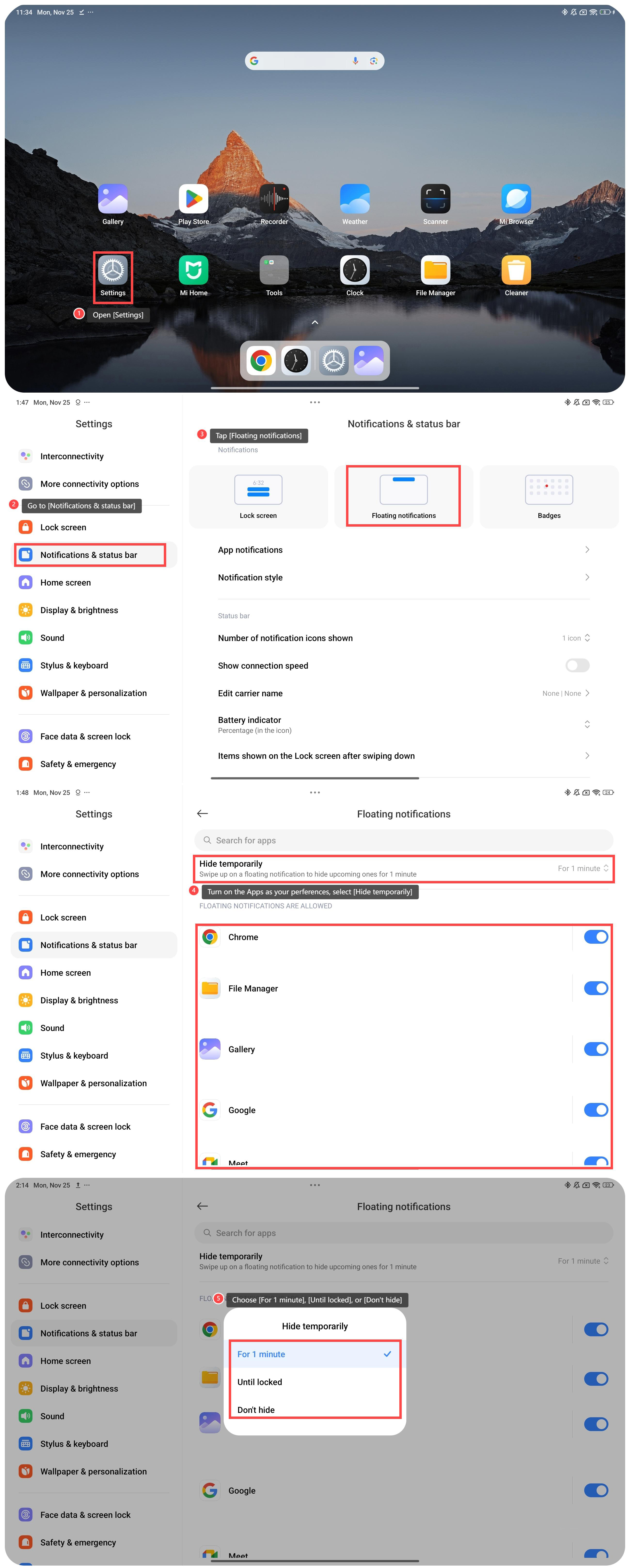 จะจัดการการแจ้งเตือนแบบลอยบน REDMI Pad Pro 5G ได้อย่างไร