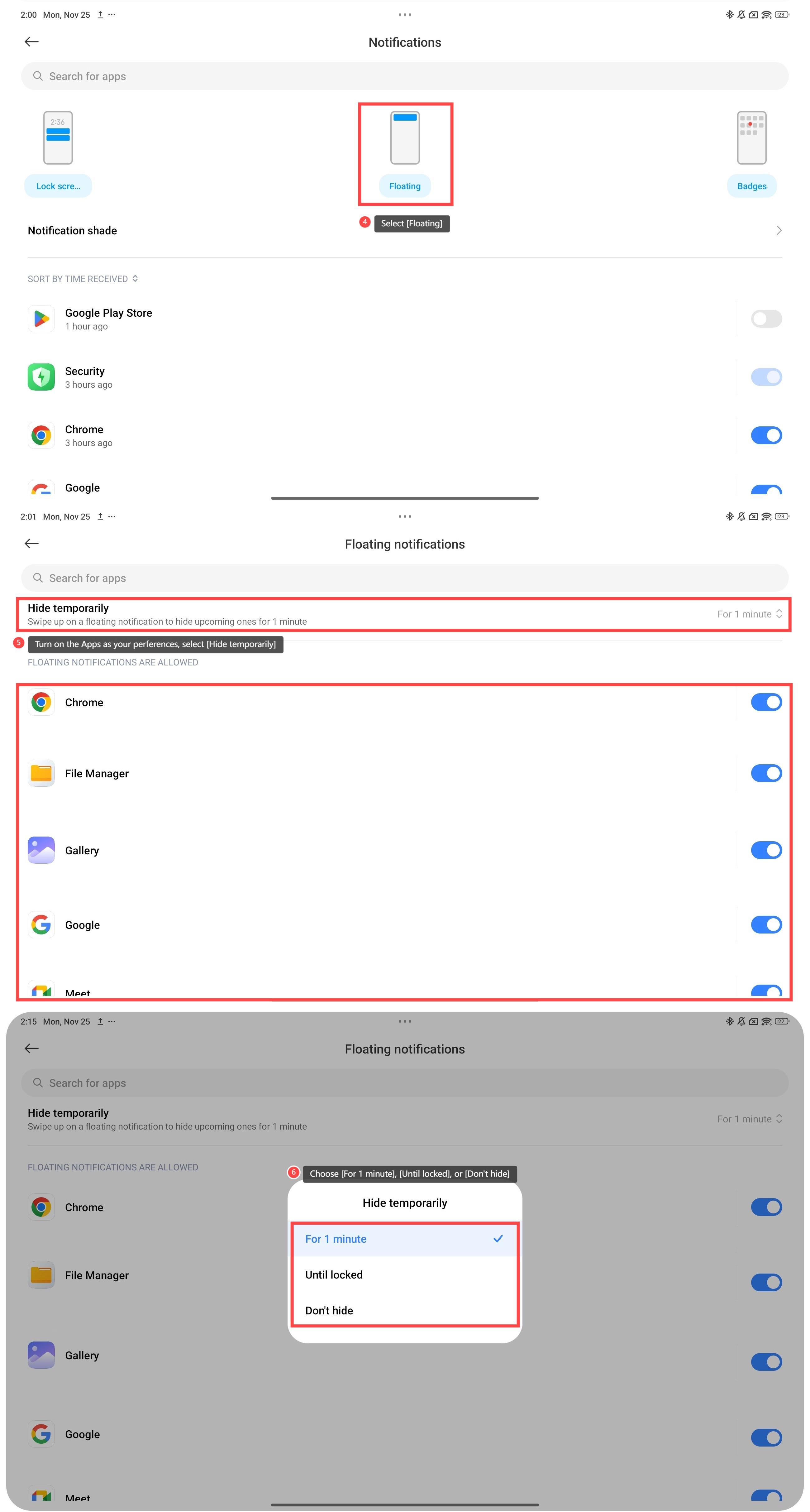 หากต้องการจัดการการแจ้งเตือนแบบลอย โปรดดูวิธีการต่อไปนี้: