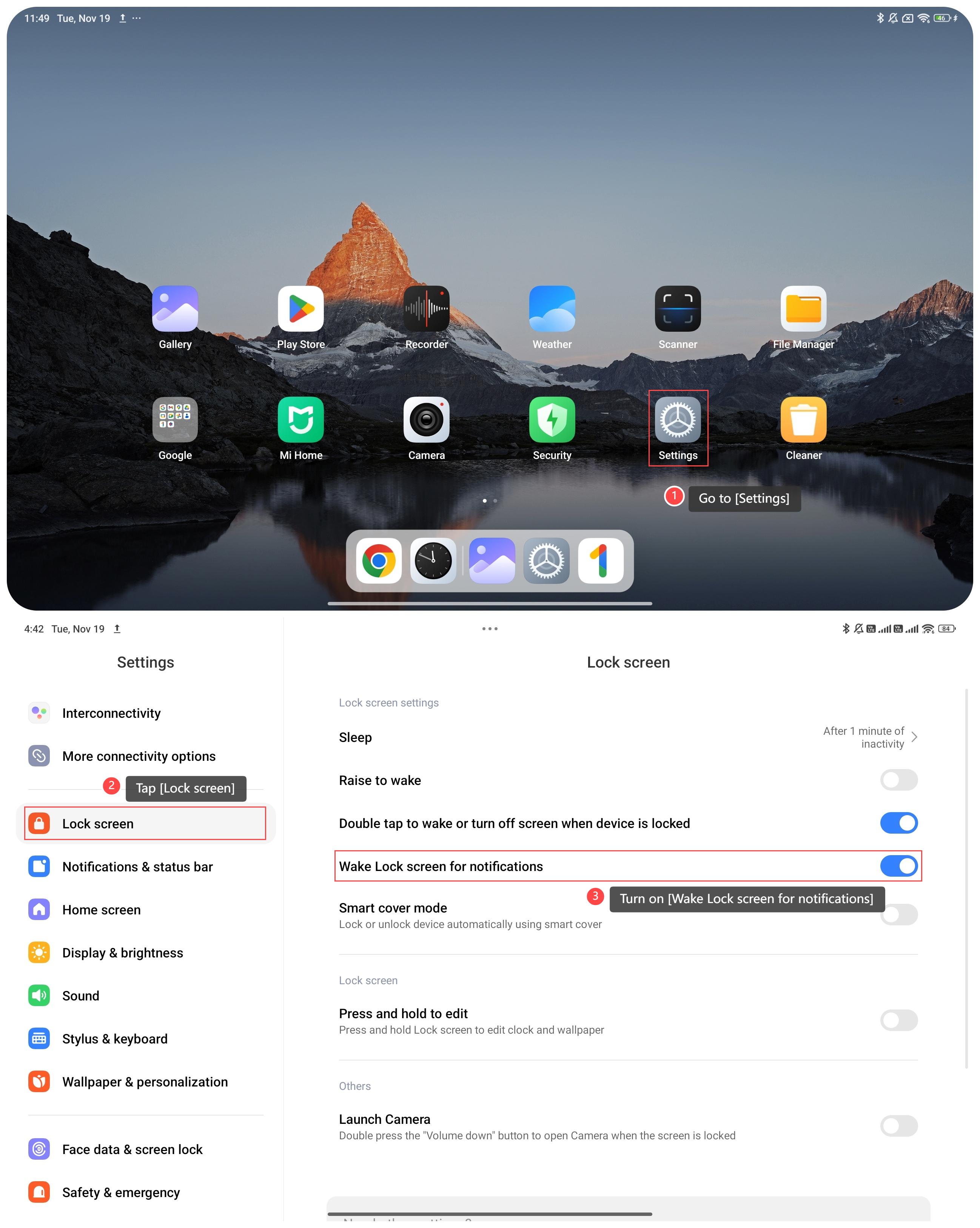 REDMI Pad Pro 5G รองรับการปลุกหน้าจอเมื่อได้รับการแจ้งเตือน ซึ่งช่วยให้คุณดูการแจ้งเตือนได้อย่างรวดเร็วและตรวจสอบการแจ้งเตือนได้อย่างรวดเร็วโดยไม่ต้องกดปุ่มใดๆ การปลุกหน้าจอเพื่อรับการแจ้งเตือนสามารถช่วยให้คุณรับรู้กิจกรรมของอุปกรณ์ได้ดียิ่งขึ้น โดยเฉพาะอย่างยิ่งในการตั้งค่าสาธารณะ ซึ่งจะช่วยประหยัดเวลาและพลังงานของคุณ