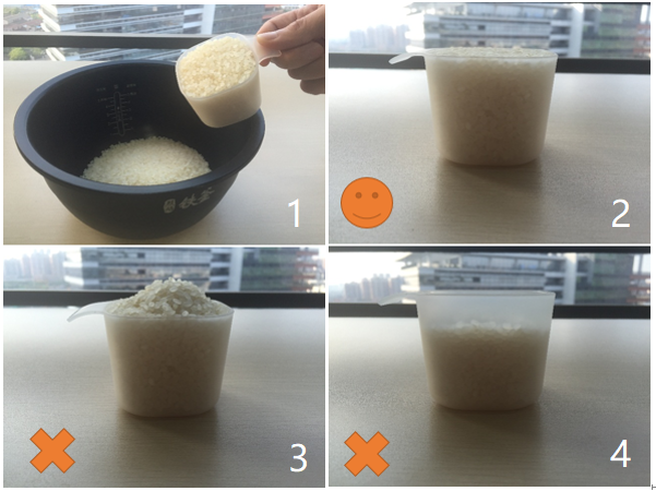 ข้าวและข้าวด่วนเหมาะสําหรับหุงข้าว (ข้าวแห้ง) เท่านั้น และไม่สามารถใช้ในการหุงโจ๊กหรือข้าวต้มได้ เมื่อหุงข้าวหรือโจ๊ก น้ําที่เติมไม่ควรเกินเส้นมาตราส่วนระดับน้ําของจํานวนถ้วยที่สอดคล้องกัน