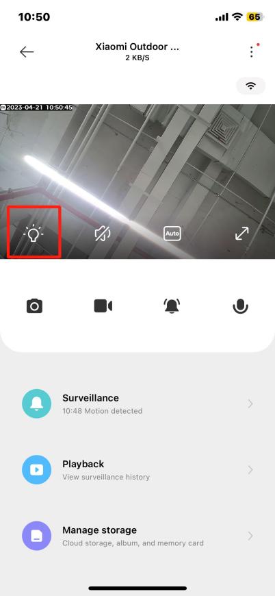 อินเทอร์เฟซการตรวจสอบแบบเรียลไทม์ของ Xiaomi Outdoor Camera AW300 มีไอคอนมากมายสําหรับฟังก์ชันต่างๆ ไอคอนบนอินเทอร์เฟซการตรวจสอบจะปรากฏขึ้นเมื่อคุณแตะที่หน้าจอสดเท่านั้น มิฉะนั้น ไอคอนจะยังคงซ่อนอยู่