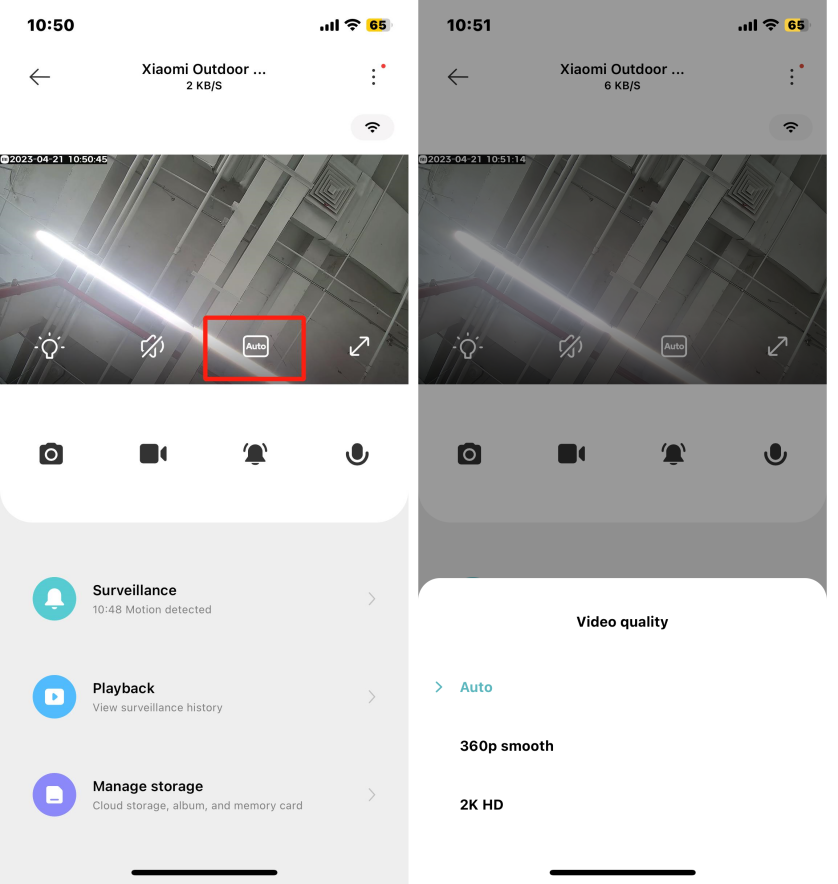 3. สวิตช์คุณภาพวิดีโอ: แตะไอคอน  [อัตโนมัติ] เพื่อสลับระหว่าง [360p smooth],  [2K HD] และ [อัตโนมัติ]  (สวิตช์คุณภาพตามสภาพแวดล้อมเครือข่าย)