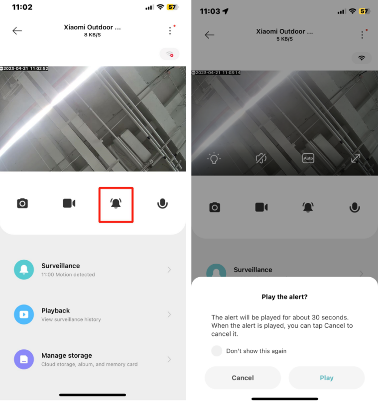 5. การโทรด้วยเสียง: แตะไอคอนไมโครโฟนบนหน้าจอสดของกล้องเพื่อเริ่มการโทรระยะไกลผ่านแอป Mi Home/Xiaomi Home