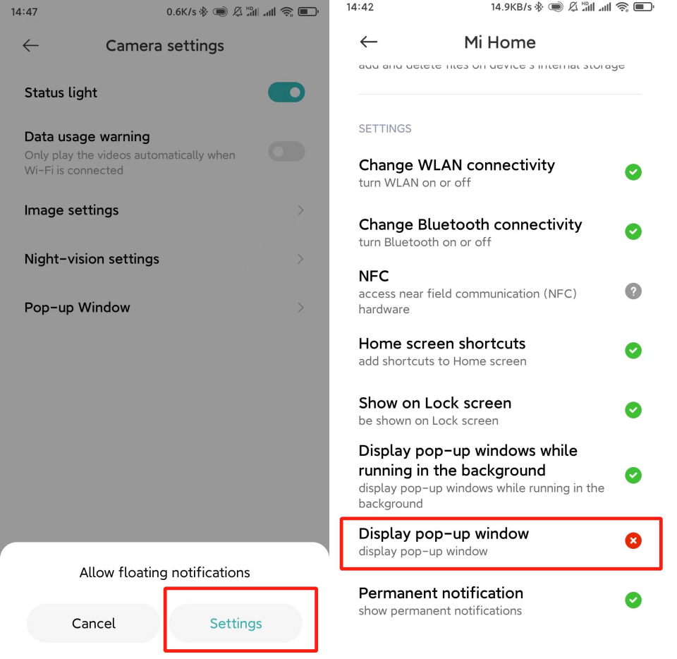 คุณสามารถย่อภาพสดให้เป็นหน้าต่างลอยได้หลังจากเปิดใช้งานหน้าต่างป๊อปอัปในแอป Mi Home/Xiaomi Home ช่วยให้คุณจัดการงานอื่นๆ ได้อย่างมีประสิทธิภาพในขณะที่ยังคงดูอินเทอร์เฟซการตรวจสอบแบบเรียลไทม์ ฟีเจอร์นี้ใช้ได้เฉพาะในโทรศัพท์ Android เท่านั้น