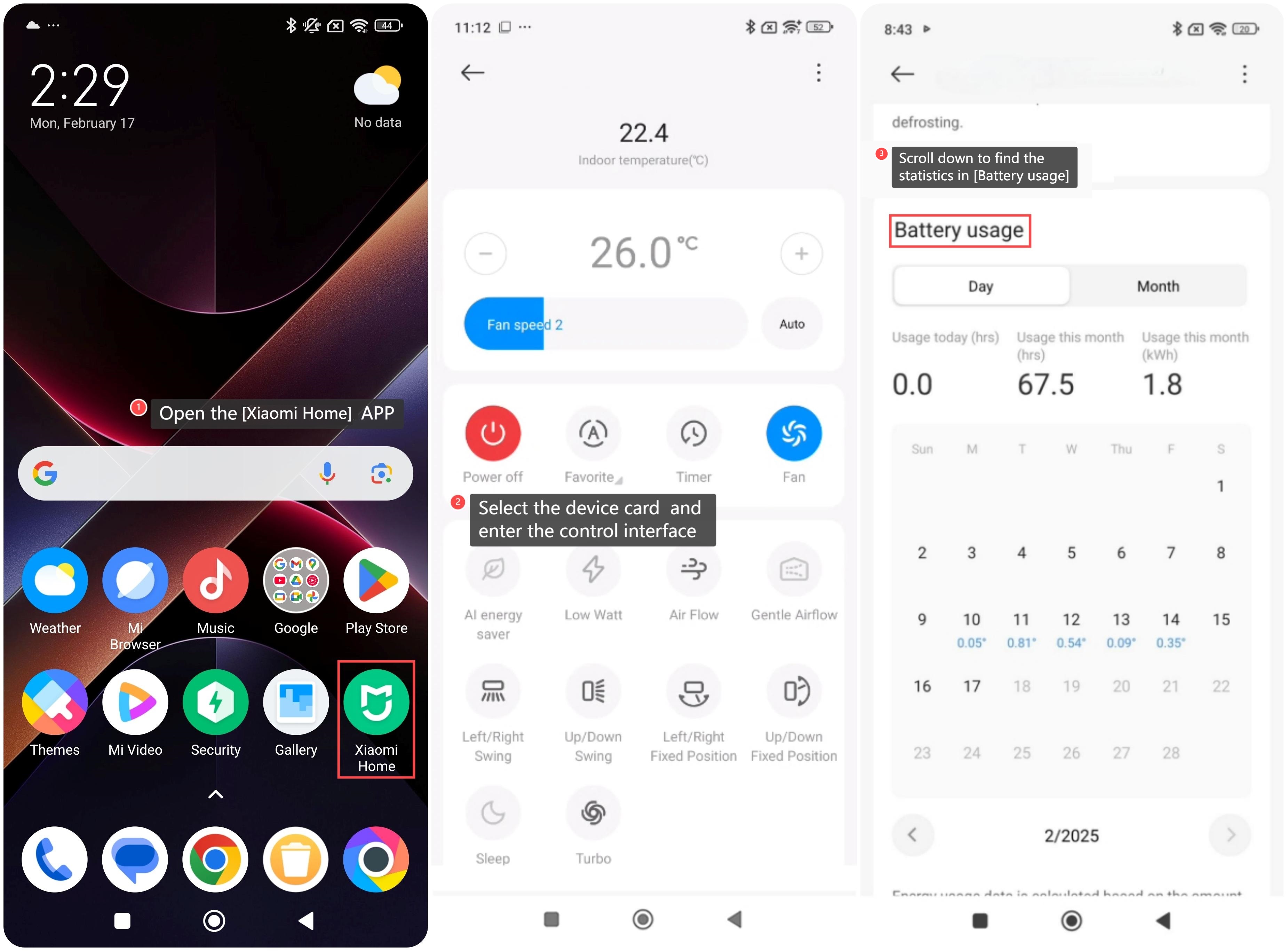 Mijia Air Conditioner Pro Eco LABEL EGAT NO.5 (3 Star) 12000BTU Inverter รองรับสถิติการใช้แบตเตอรี่ คุณสามารถ view สถิติการใช้แบตเตอรี่ในแอป Xiaomi Home/Mi Home สิ่งนี้ให้ข้อมูลเชิงลึกโดยละเอียดเกี่ยวกับการใช้พลังงาน ช่วยให้คุณตรวจสอบแนวโน้มการใช้พลังงานรายวันและรายเดือนได้