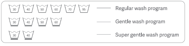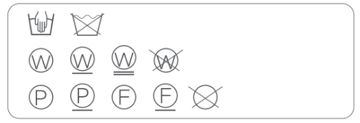 1. ห้ามซักเสื้อผ้าที่มีสัญลักษณ์ใดๆ ต่อไปนี้ในเครื่องซักผ้า เครื่องอบผ้า มิฉะนั้นเสื้อผ้าจะเสียหาย
