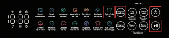 1. โปรดตรวจสอบให้แน่ใจว่าได้ระบายน้ําที่เหลืออยู่ในเครื่องซักผ้า โปรแกรม Spin Only สามารถกําจัดน้ําที่เหลือได้อย่างรวดเร็ว