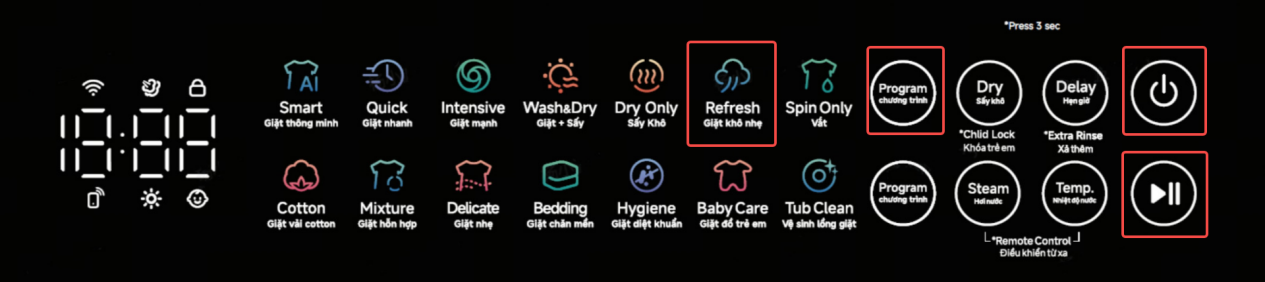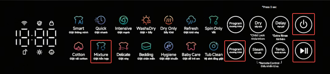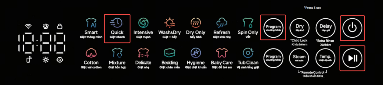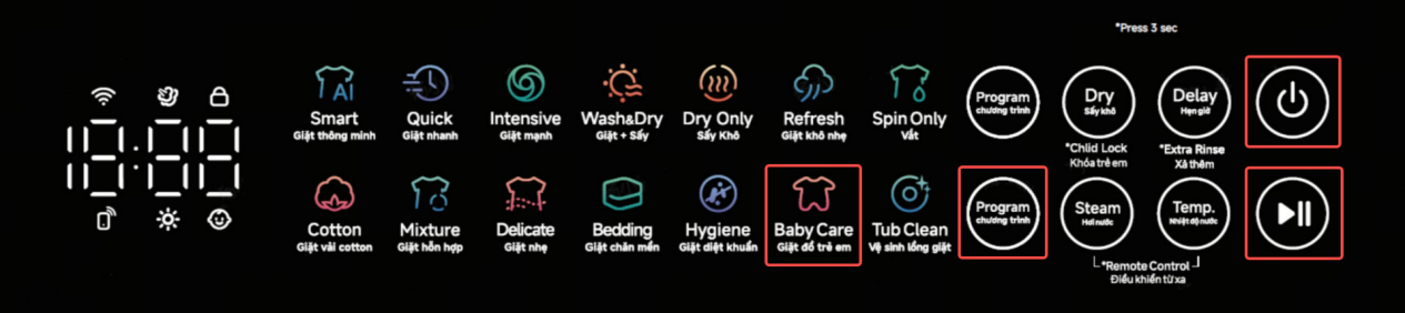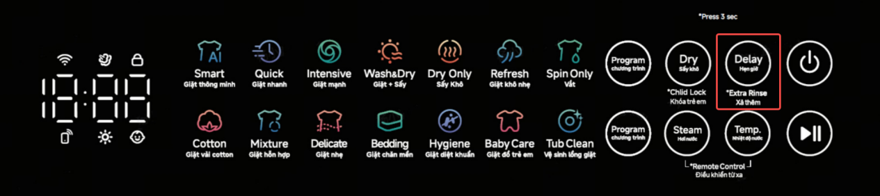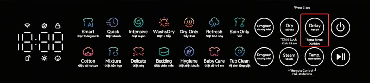 5. ด้วยปุ่มสัมผัสการแสดงผลสีโหมดการซักและการเลือกฟังก์ชั่นจะชัดเจนในพริบตาและการทํางานนั้นง่ายและใช้งานง่าย