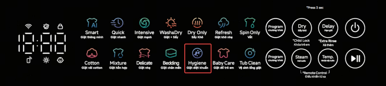 (2). ทําความสะอาดถังซักด้วยโปรแกรม Tub Clean ต่อ 3 เดือน