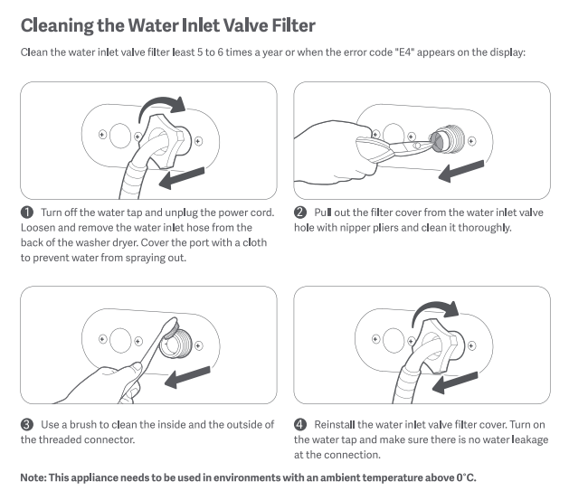 3. ถาม: วิธีทําความสะอาดตัวกรองวาล์วน้ําเข้าของ Mijia Front Load Washer Dryer 10.5kg?