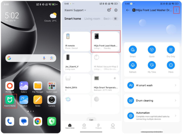 ตอบ: แอปพลิเคชั่นสําหรับเชื่อมต่อและจัดการ Mijia Front Load Washer Dryer 10.5kg คือ Mi Home/Xiaomi Home APP