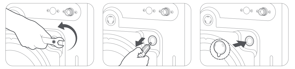 (2). หลังจากระบายน้ําออกแล้ว ให้เสียบปลั๊กกลับเข้าไปใหม่และใส่ท่อระบายน้ําฉุกเฉินกลับสู่ตําแหน่งเดิม หมุนตัวกรองท่อระบายน้ําทวนเข็มนาฬิกาเพื่อเปิด
