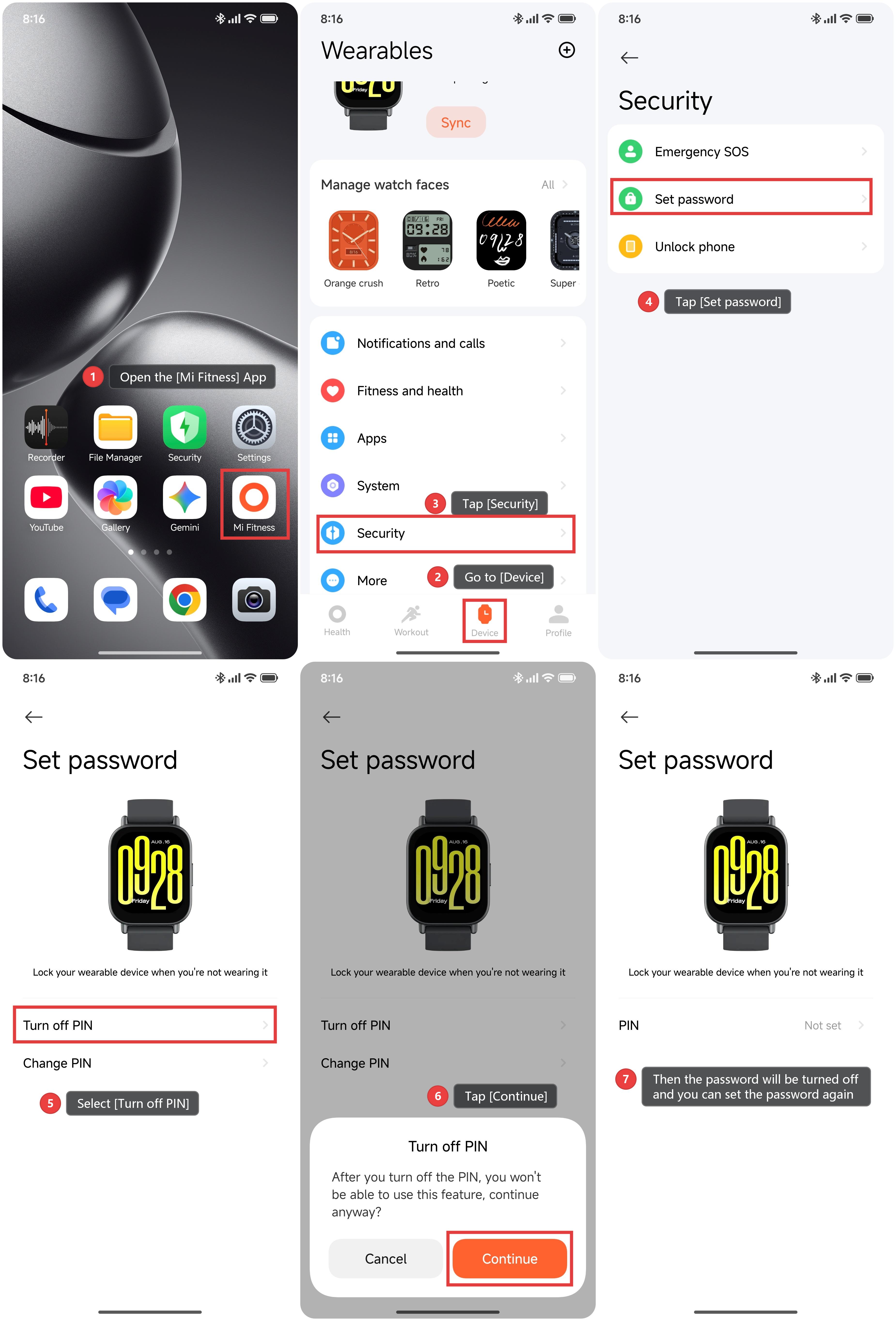 หากคุณลืมรหัสผ่านสําหรับ Xiaomi/REDMI Watch Series, Xiaomi /REDMI Band Series โปรดดูวิธีการต่อไปนี้: