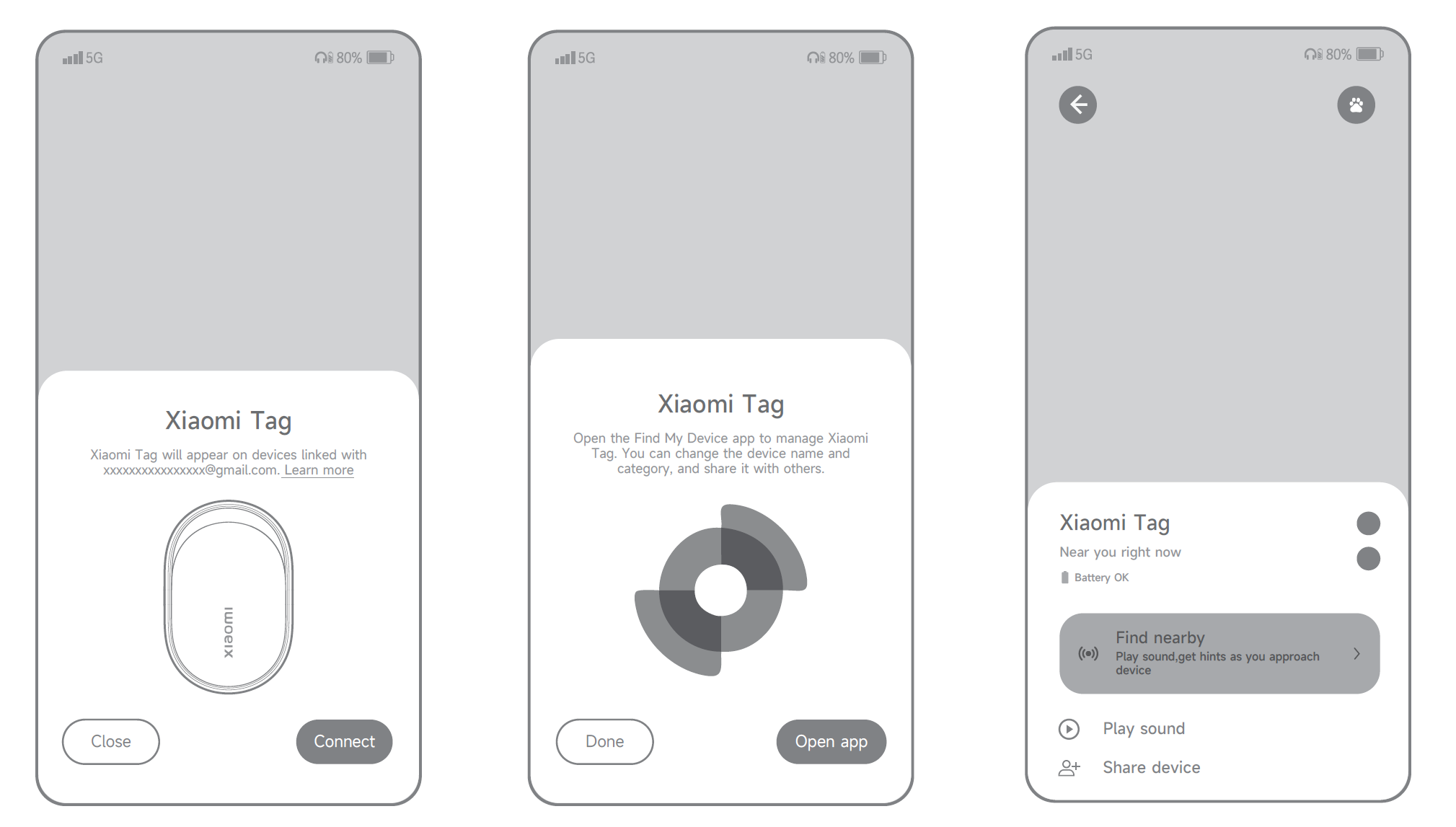 1. เมื่อใช้งาน Google’s Find Hub App ให้ตั้ง Xiaomi Tag ให้อยู่ในโหมดการจับคู่และนำมาไว้ใกล้กับโทรศัพท์หรือแท็บเล็ต Android เมื่อการ์ดป๊อปอัป Fast Pair สำหรับ “Xiaomi Tag” ปรากฏขึ้น ให้แตะ [เชื่อมต่อ] และทำตามคำแนะนำบนหน้าจอ เสียงแจ้งเตือนบ่งชี้ว่าการเชื่อมต่อสำเร็จแล้ว