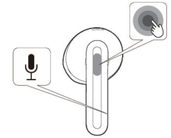 4. โดยค่าเริ่มต้น ให้กดค้างบริเวณระบบควบคุมแบบสัมผัสของเอียร์บัดข้างซ้ายหรือข้างขวาเป็นเวลา 2 วินาทีเพื่อเปิดใช้งานผู้ช่วยเสียง หรือปฏิเสธสายเรียกเข้า.