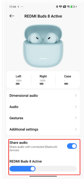 Q49: วิธีใช้ฟีเจอร์การแชร์เสียงบน REDMI Buds 8 Active?