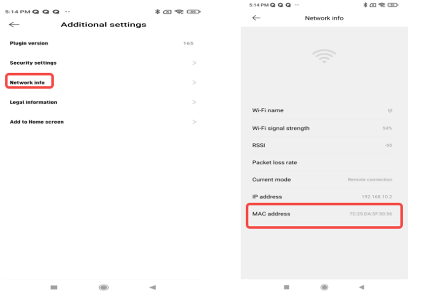 Xiaomi Home App >> Görüntülemek İstediğiniz Cihaz >> "..." Sağ üst köşedeki ayarlar >> Ek Ayarlar >> Ağ Bilgileri,