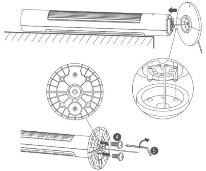 Şekilde gösterildiği gibi, çarkın altındaki sabitleme vidasını çıkarmak için özel anahtarı ⑤ kullanarak saat yönünün tersine çevirin. Pervane bölmesinin üst kısmına dayanması için pervaneyi yukarı doğru itin ve ardından çıkarmak için dışarı çekin.