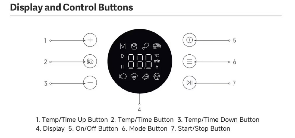 C: Xiaomi Air Fryer 6.5L'nin kontrol paneli düzeni aşağıdaki gibidir:
