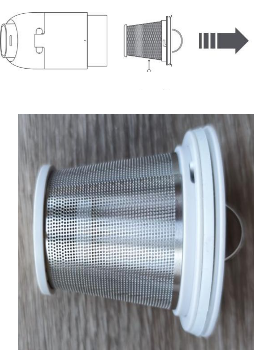 5. Toz haznesi, filtre perdesi, filtre elemanı ve emme kafası temiz su ile durulanabilir ve daha sonra tamamen kurutulduktan sonra tekrar sıraya konulabilir.