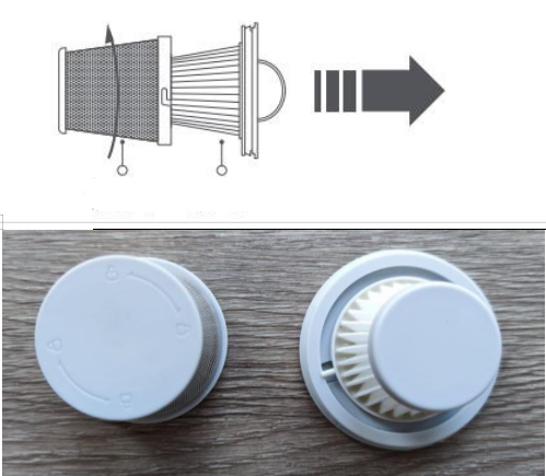 4. Filtreyi saat yönünün tersine döndürün ve ardından filtre elemanını dışarı çekin.