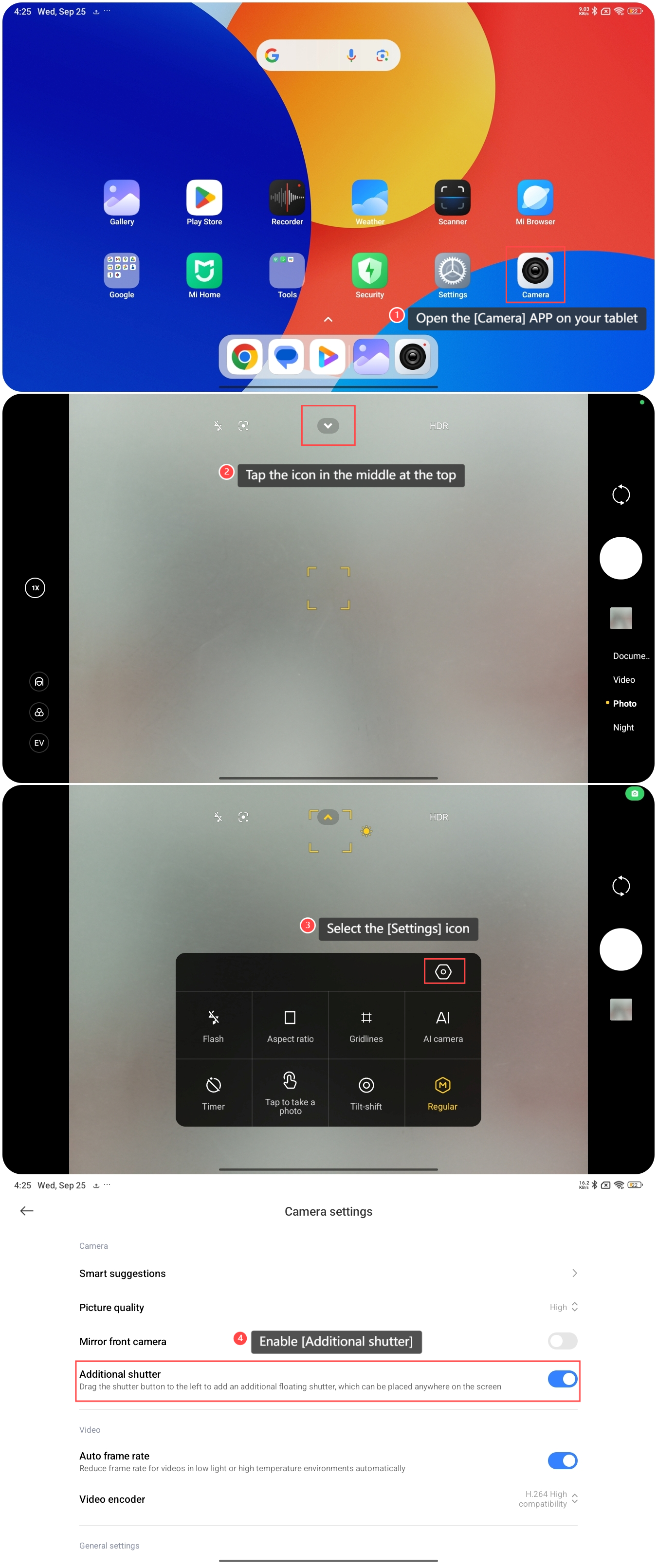 Redmi Pad SE 8.7 4G'deki ek deklanşörü kullanmak için lütfen aşağıdaki adımlara bakın: