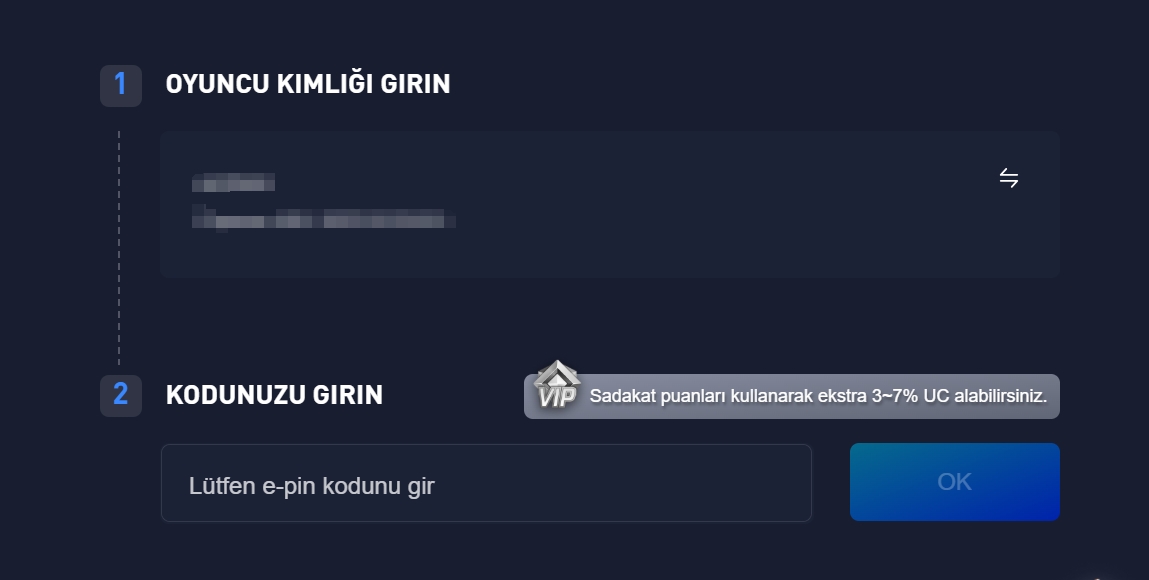 Son olarak Oyunfor'dan almış olduğunuz PUBG Mobile UC kodunuzu görselde gösterilen alana girerek "OK" butonuna tıklayın. İyi oyunlar!