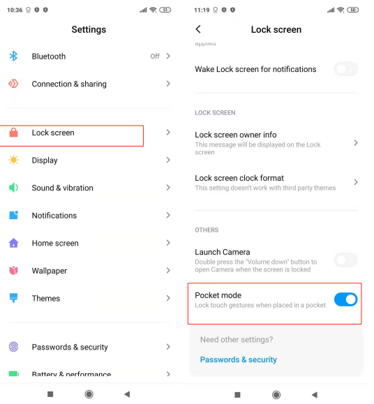 具體設置方法:設置>>鎖屏>>口袋模式,開啟「口袋模式」。。