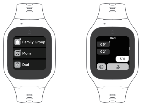 在功能清單中滑動到語音留言螢幕(在撥號屏(時鐘屏)上左滑),輸入並選擇相應的聯繫人並點擊消息以發送和接收語音。