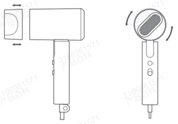 安裝和拆卸噴嘴:本產品配備 360 度旋轉噴嘴。握住噴嘴並將其從出風口中斷開以將其取出;將噴嘴底部壓在出風口上,當您聽到「咔嗒」一聲時,它已成功安裝。