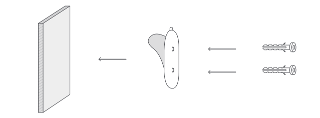 2. 依定位貼紙上的孔位在牆面打孔,孔直徑約5mm,孔深約26mm。