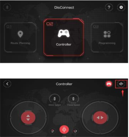 A:有幾種模式可以控制機器人:路線規劃,控制器,程式設計,陀螺穩定器模式(在控制器模式下找到,如下所示)。更多模式將在將來的更新中發佈。