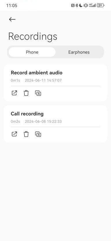 Android 和iOS手機都支持錄音功能。iOS手機使用BLE,導出時間會比Android手機長。具體傳輸時間受檔大小和傳輸過程中的網路環境影響。