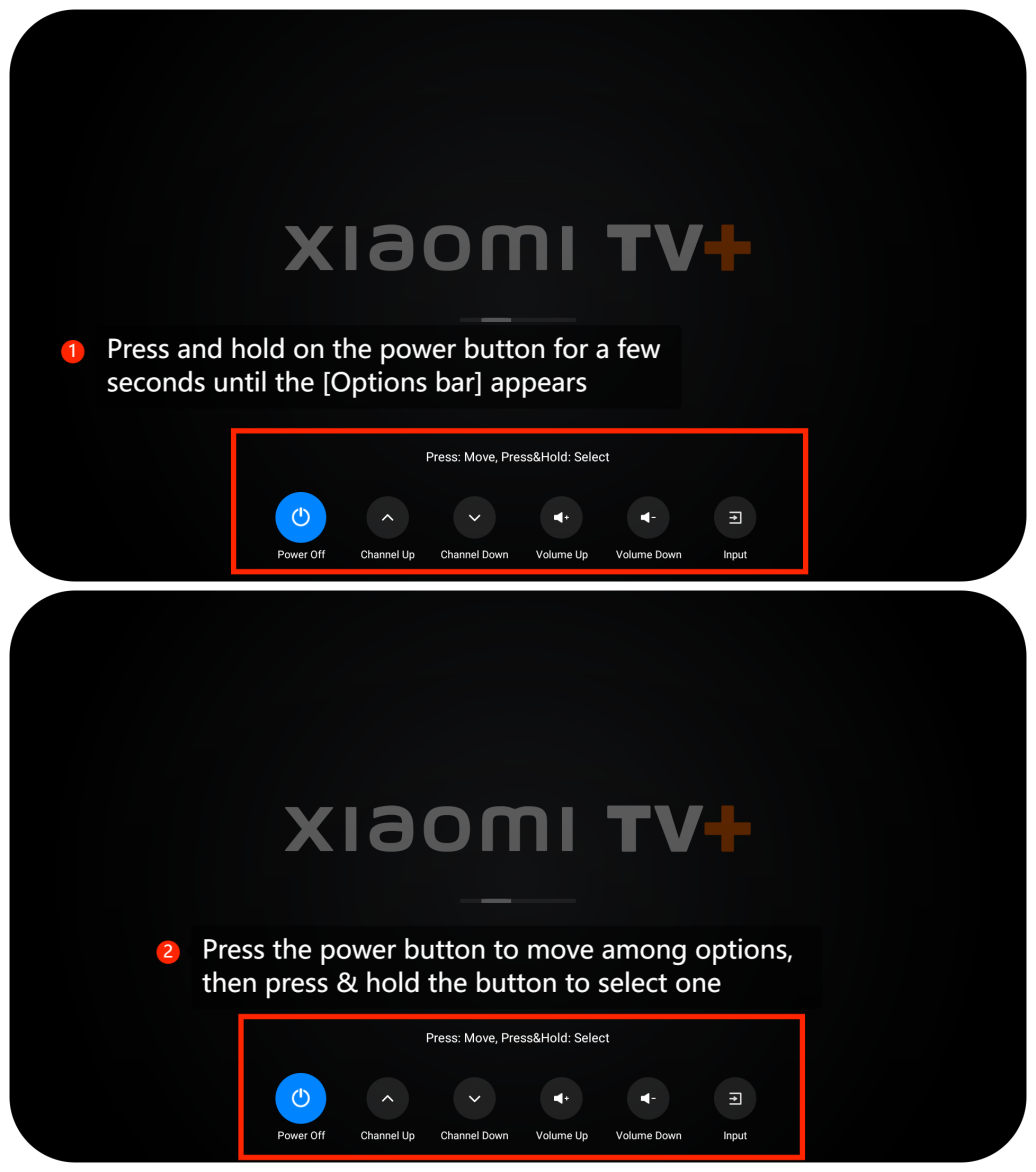 按下電源按鈕在選項之間移動,然後按住按鈕選擇一個