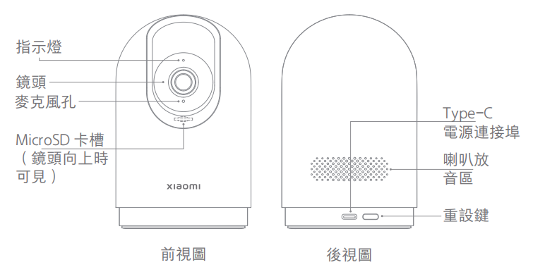 A: Xiaomi 智慧攝影機 C500 Pro外觀介紹如下: