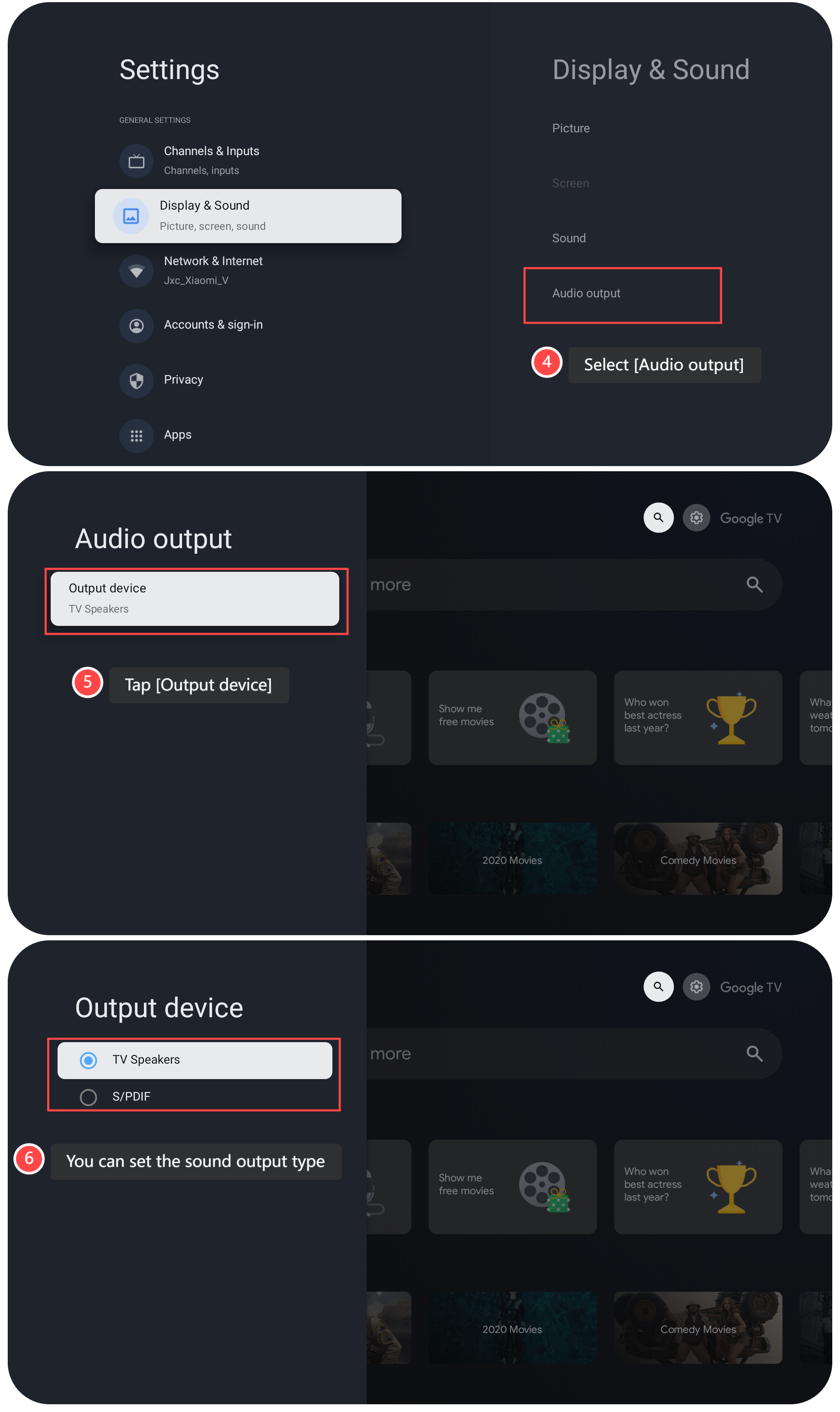 要調整電視上的聲音輸出類型,請參考以下步驟: