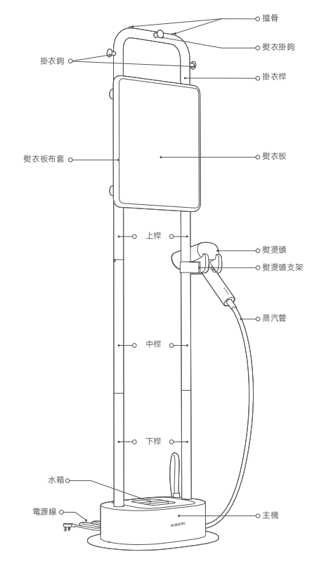 A:Xiaomi 立式掛燙機的外觀如下圖: