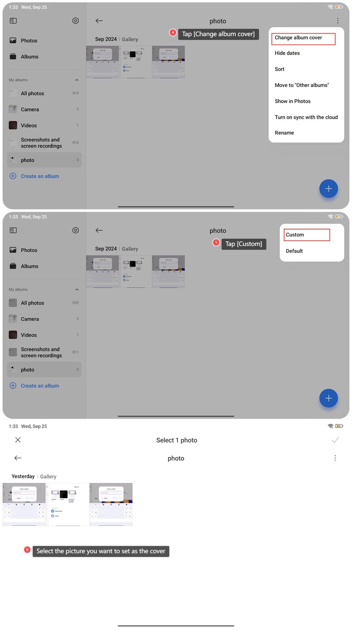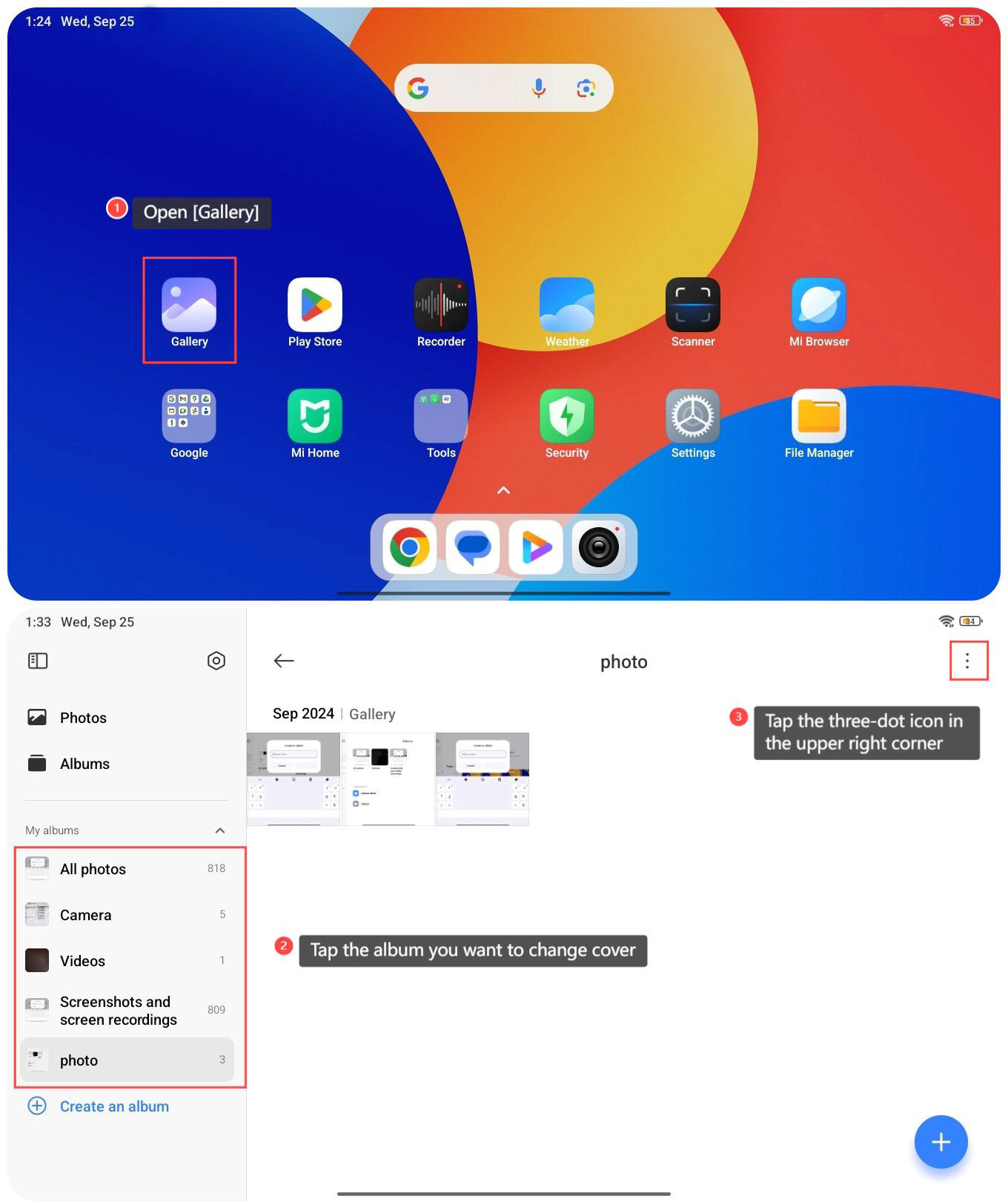 如何在 Redmi Pad SE 8.7 的 Gallery 中更改專輯封面?