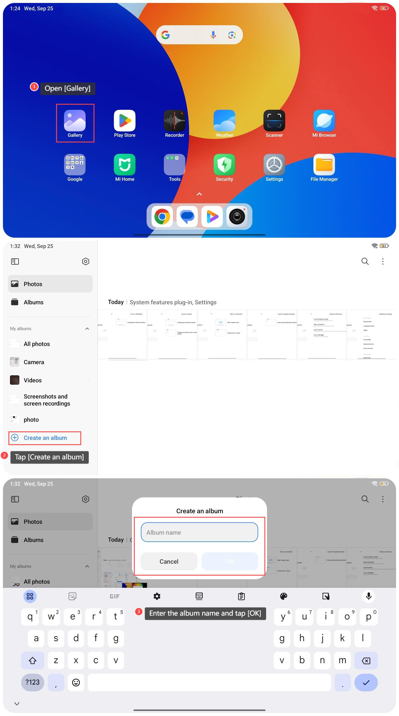 如何在 REDMI Pad SE 8.7 上的 Gallery 中創建相冊?
